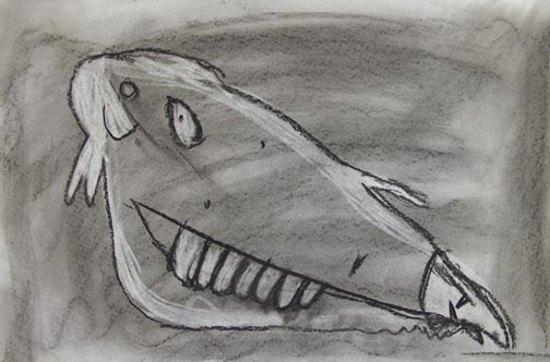 Grades kindergarten through 5th participated in a series of drawing exercises. This residency differred from others in that the school did not want a mural for a final product. Instead, I conducted drawing sessions that focused on mark-making variety and tools (pencil, charcoal, kneaded eraser and tissue), techniques/methods and observational skills using both a static model (horse skull) and a moving model (figure).